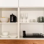 - ❓Is there a kitchen available at the apartment for guest use?Yes, the apartment is furnished with a fully-fitted kitchen and offers a microwave, coffee and tea making machines, and a refrigerator as well.